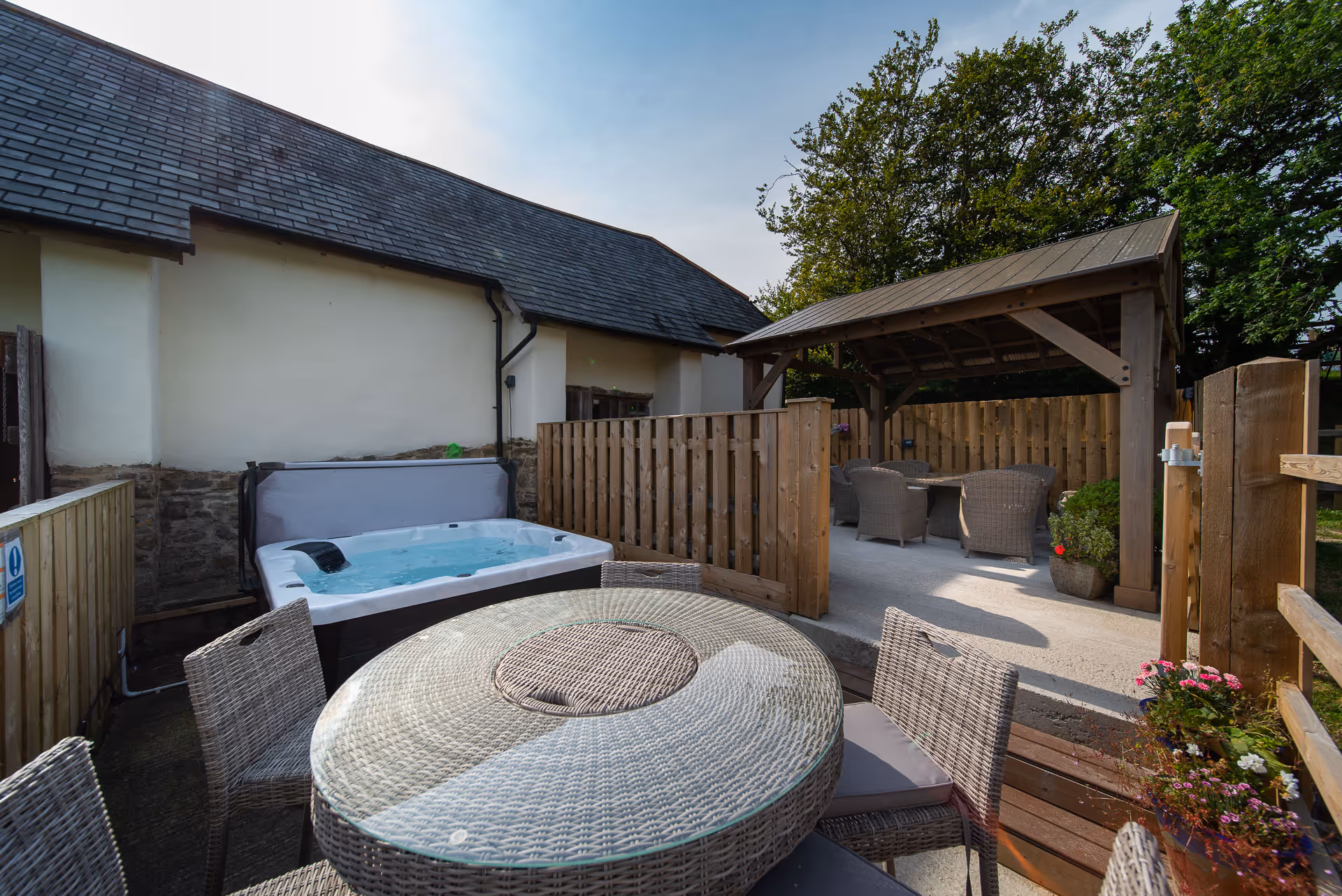 Also, on the patio is the private hot tub, which is available all year round and a great addition to this wonderful holiday cottage.