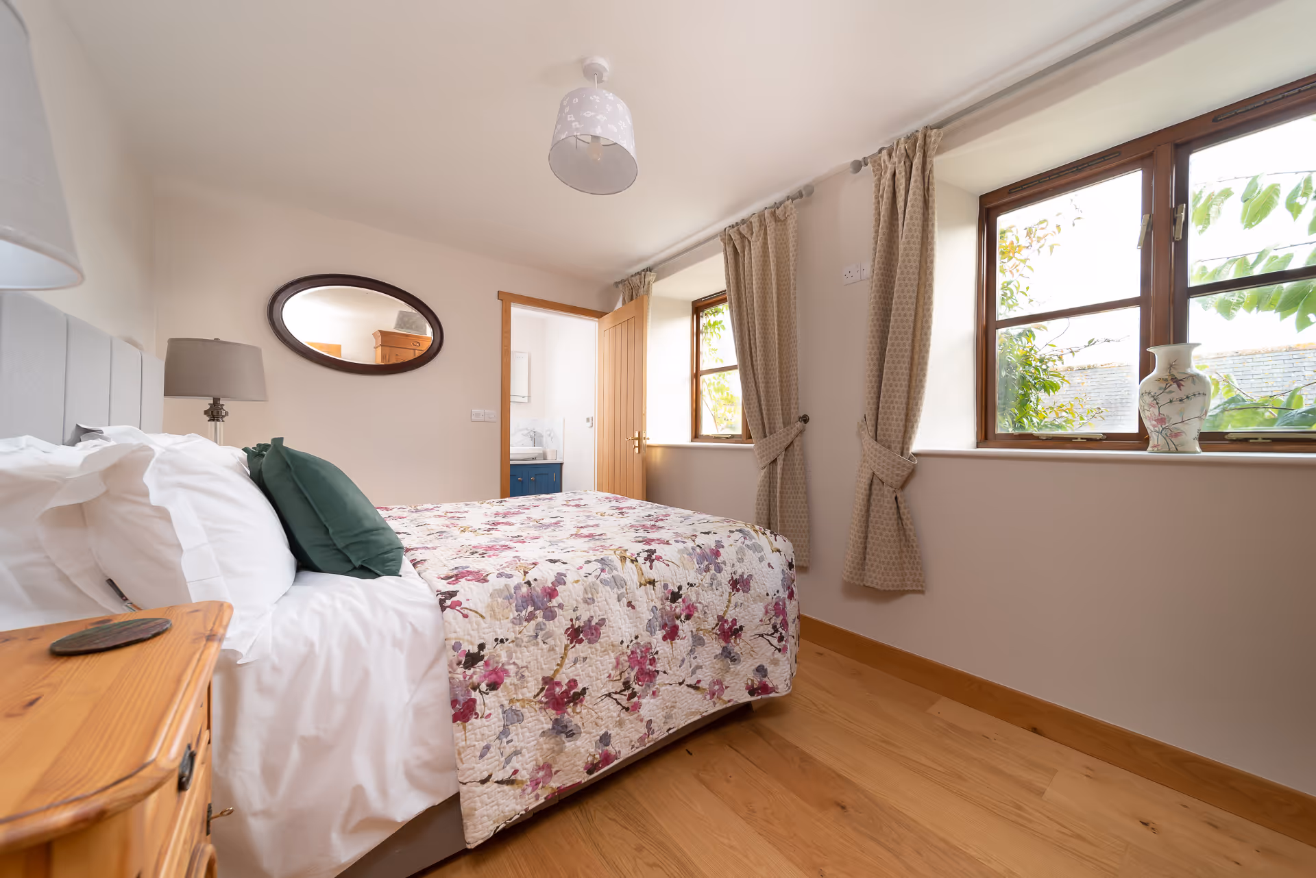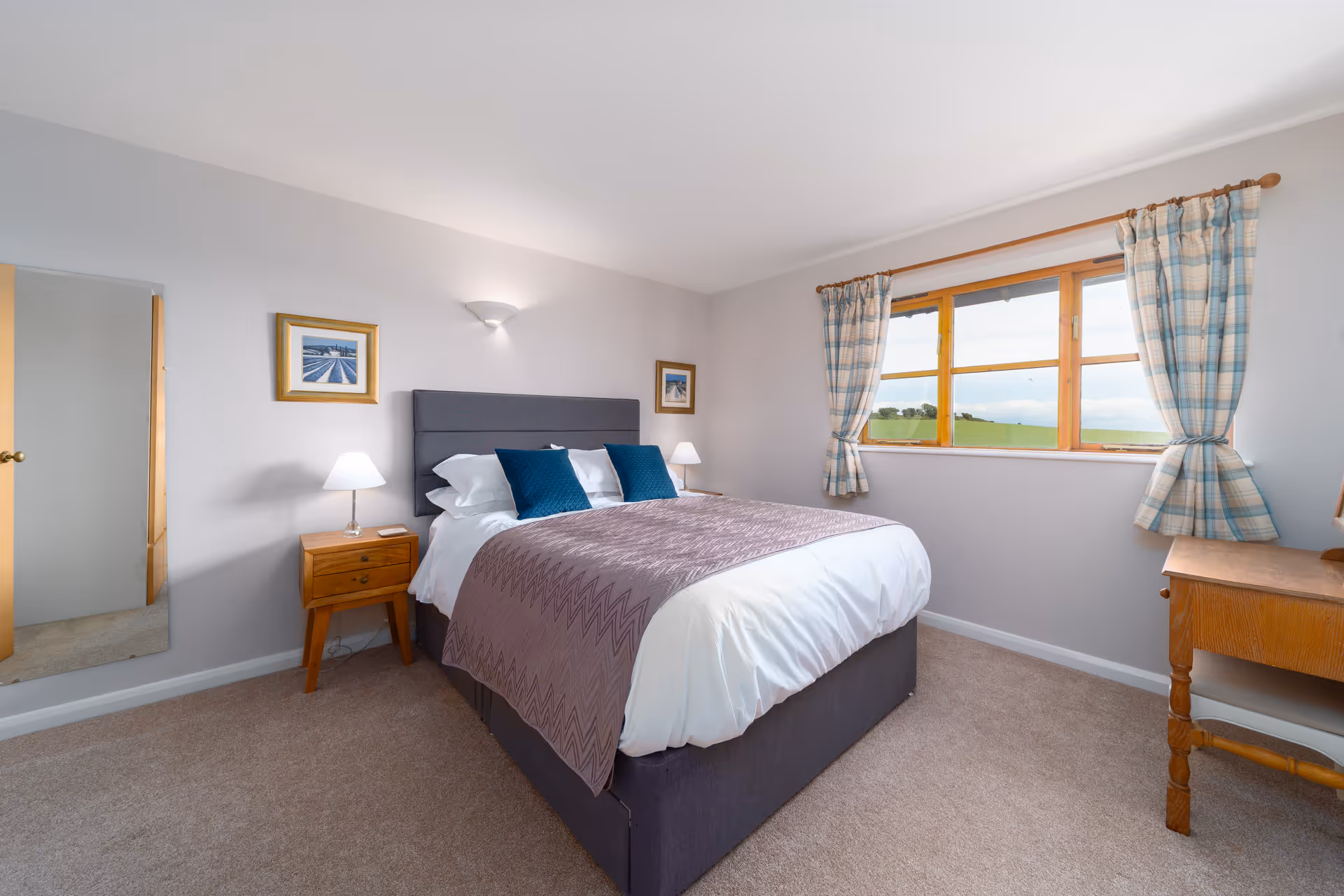 The second bedroom, like the first, is traditionally styled. It has a king size bed, a wardrobe and a dressing table, which overlooks the countryside views.